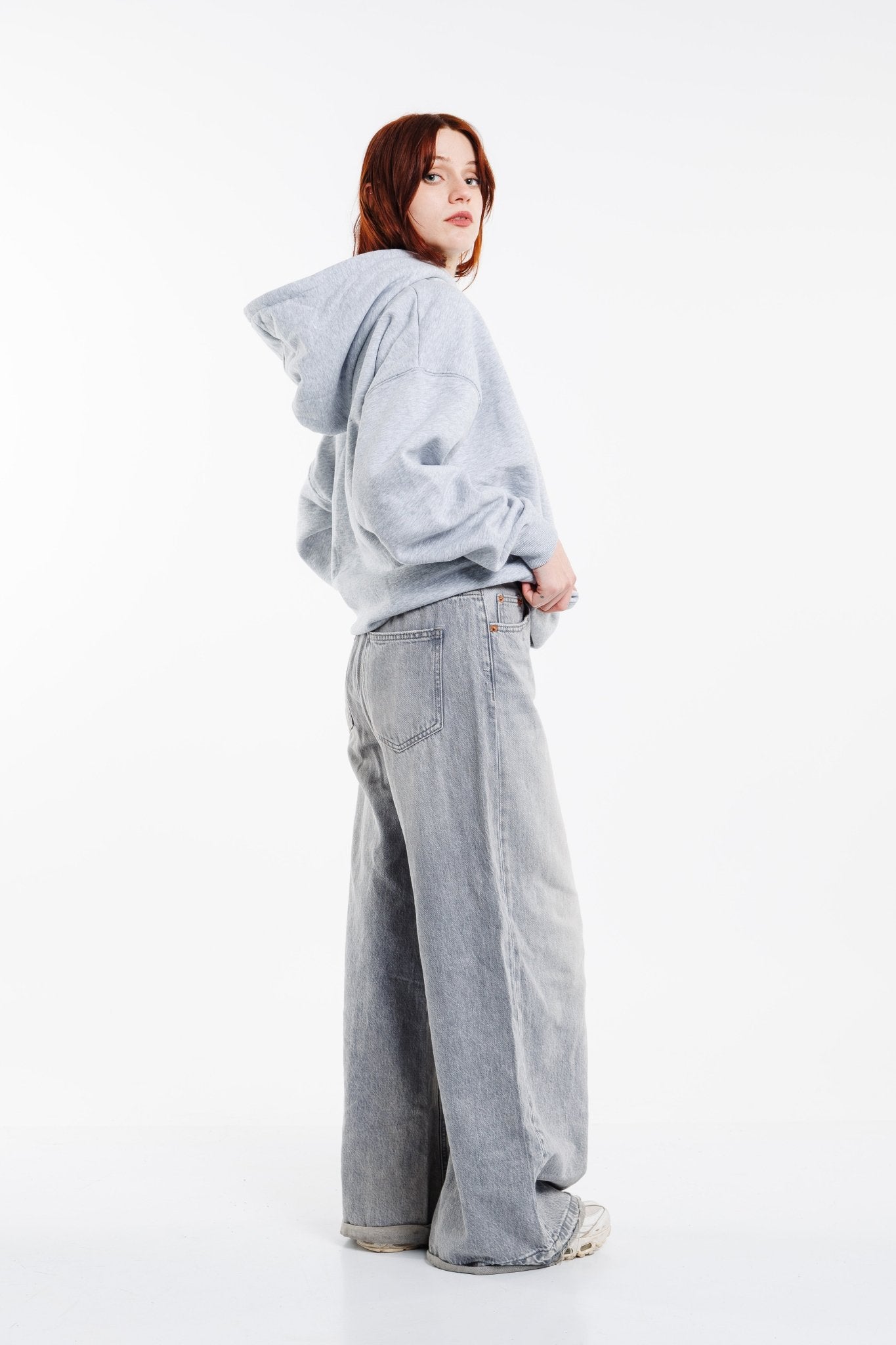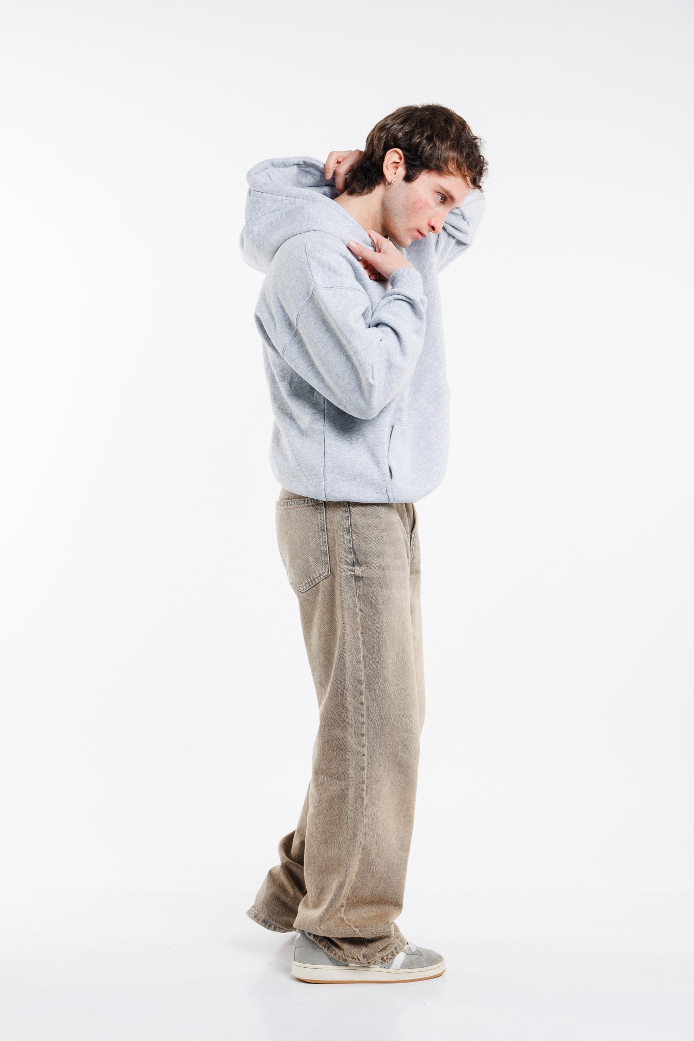 Ajuste clásico, cuerpo sin costuras con hombro caído y bolsillo canguro.